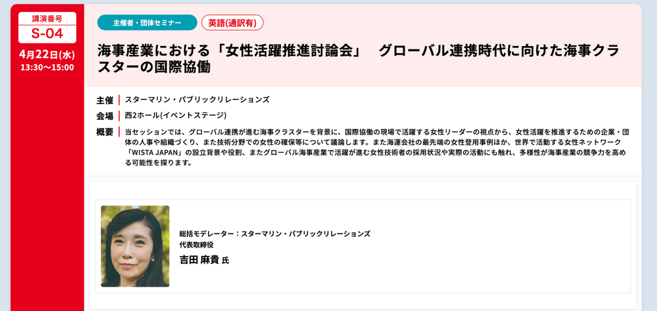 明日(4月22日)_SEA JAPAN 2026 にて、海事産業における女性活躍推進討論会を開催! 参加者募集