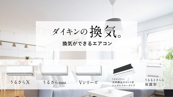 『うるさらX』の換気機能の強化や『うるさらmini』への換気機能の搭載、換気ができるスタンダードモデル『Vシリーズ』のラインアップや『うるるとさらら天井埋込カセット形シングルフロータイプ』『うるるとさらら床置形』の使いやすさの向上を通じて、換気ができるルームエアコンのより広い普及を目指すとともに、夏でも冬でも快適な換気ができる環境をより多くのお客様にお届けします。
