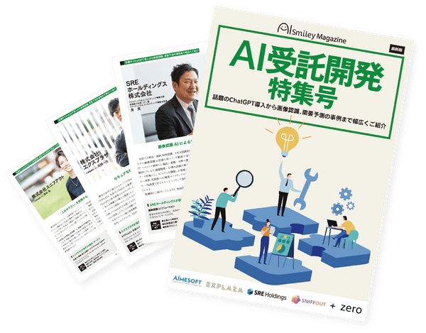 お問い合わせ完了後にご登録されたEメールにAIsmileyの担当から「AI受託開発特集号」(PDF)をメールにて送付させていただきます。