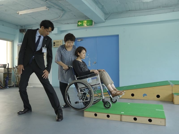 災害の現場で介助が必要な方がいたら、どんな支援をしたらいいのでしょうか。車いす使用者の介助、白内障の見え方の体験を通じて実際にどのように困ること、不安になることがあるのかを理解し、相手に寄り添った支援の方法を考えてみましょう。