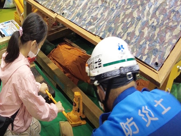 地震の揺れを体感できる起震車、防災に関するクイズに答えながらゴールをめざす迷路をはじめ、消火器の使い方、災害時のコミュニケーションに役立つ手話、避難所でできる健康法などが学べます。