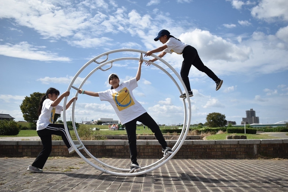 大きな輪っかを用いてぐるっと一回転、2人乗りでシーソーゆらゆら、小さなお子様は抱っこ回転など、どなたでもラートを楽しんでいただけます。