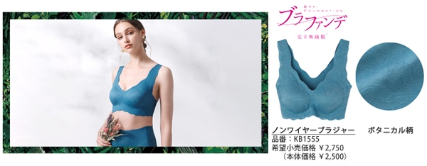 バストラインの「美しさ」と肌への「やさしさ」を両立する完全無縫製Ⓡのノンワイヤーブラジャー「ブラファンデ」にボタニカル柄のレースタイプ登場!より華やかに、美しく