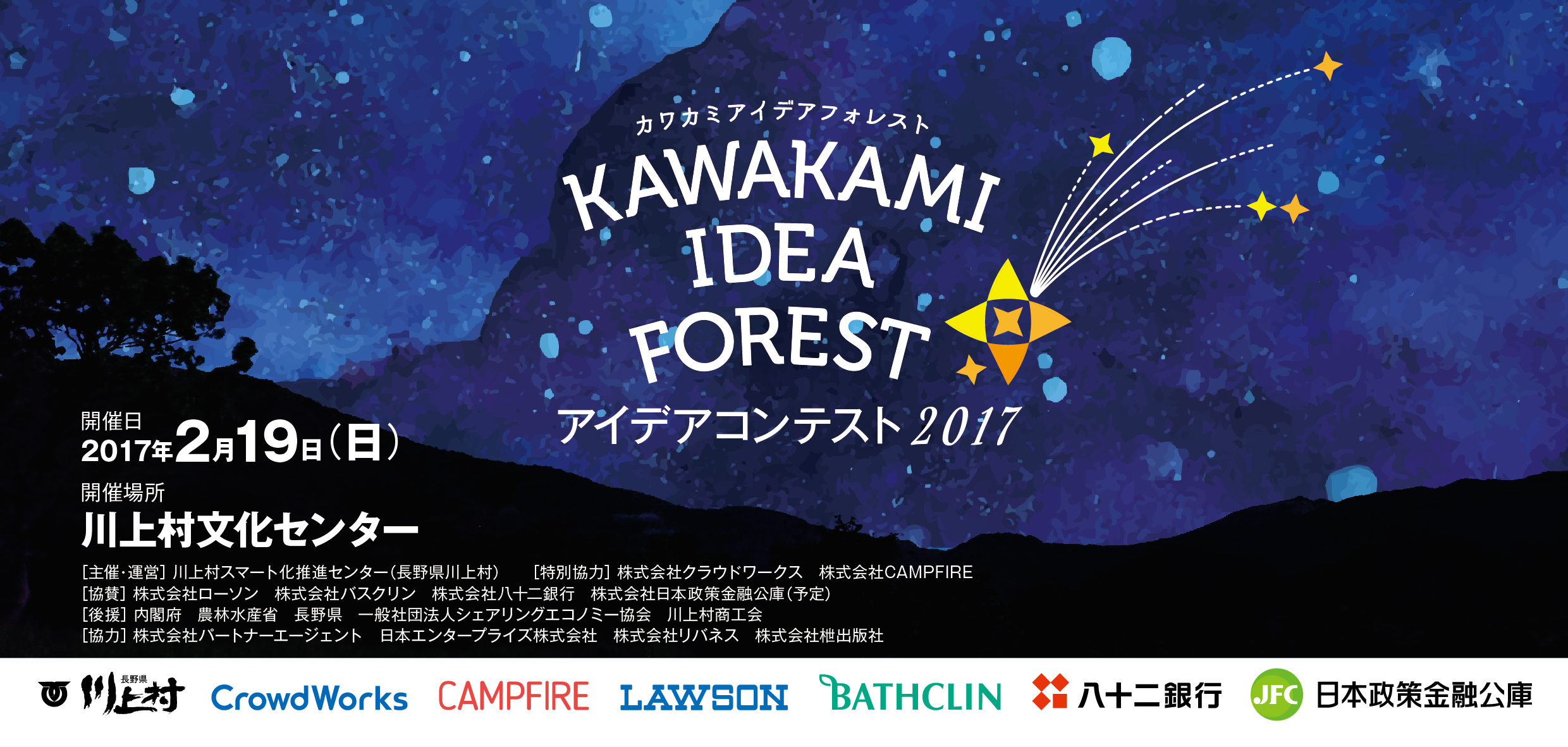企画の募集から実現までを全面支援。 地方自治体と企業が連携したアイデアコンテスト 「KAWAKAMI IDEA FOREST アイデアコンテスト2017」 2017年2月19日(日)開催