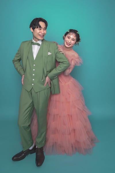 当スタジオ選りすぐりのカラードレス&タキシードを使って、カラー衣装×カラー背景×カラー小物のトータルコーディネートをご提案します。バランスを意識した色の組み合わせにより、リズミカルな印象のウェディングフォトをお楽しみいただけます。