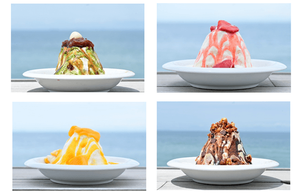 ふわふわ新触感のかき氷は、自家製クリームチーズソースをベースに各フレーバーの食材をたっぷり使用。フレーバーは