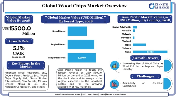リサーチ・ネスターの一部門であるケネス・リサーチは最近、「木材チップ市場:グローバル需要分析と機会見通し2028」と題する調査レポートを発表し、これには、業界の成長ドライバー、制約、需給リスクなどの著名な市場分析パラメータの一部と、COVID-19の影響、市場の成長に関連する最新の傾向と将来の機会に関する詳細な議論も含まれています。