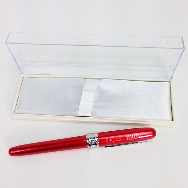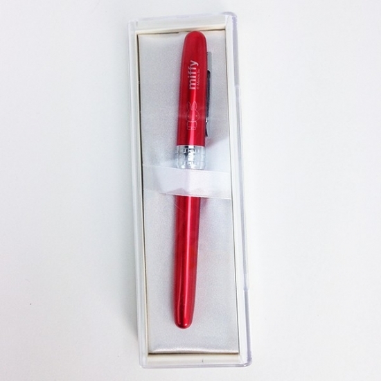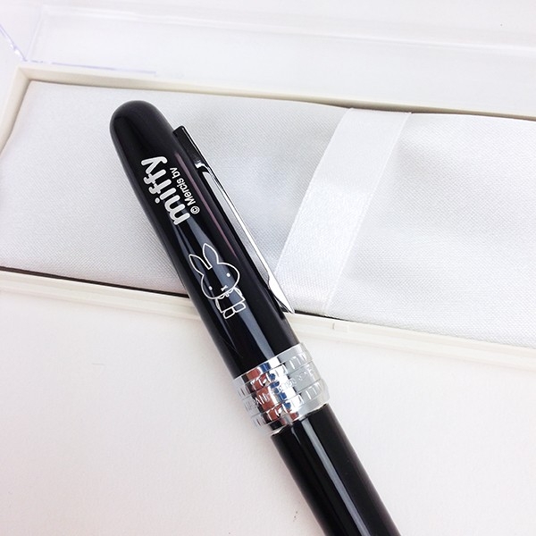 まずはシックな万年筆です。光沢のあるブラックが高級感もあり、オシャレなんです。一見シンプルなデザインでが、キャップ部分にちゃんとミッフィーがいます♪インクの色は黒で細字。