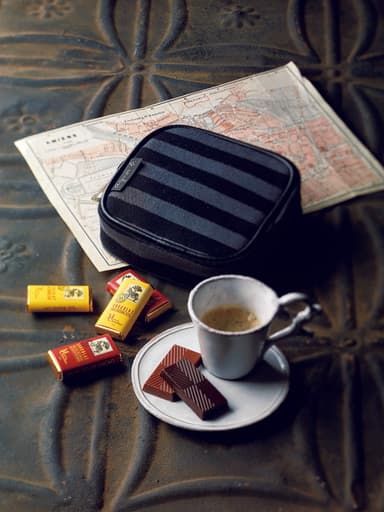 愛され続けるサクサクのウエハースを、人気ブランド「オロビアンコ」のポーチの中に入れて。