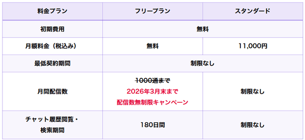 ※2026年4月以降、フリープランの月間配信数は1000通までとなる予定です。