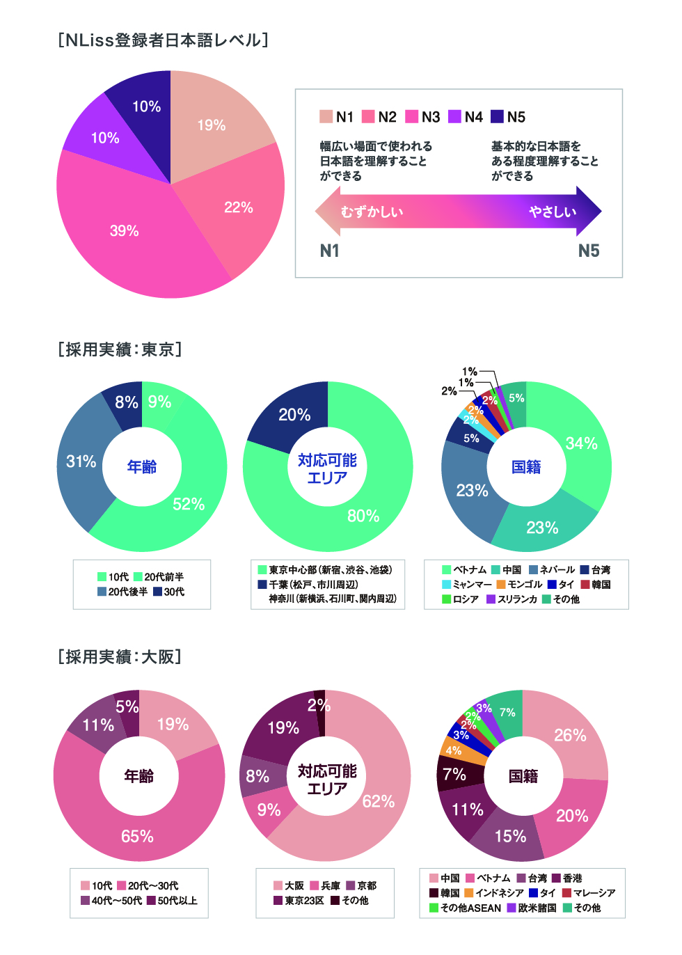『NLiss』では留学生には日本語レベルにあったアルバイト・就職情報を提供、企業様側には求める人材像に合わせた面接会をセッティングすることでお互いのニーズにあったサービスを行ってきました。