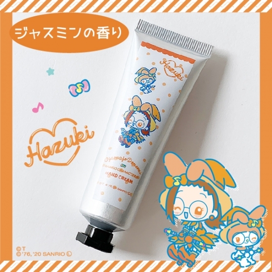 保湿バッチリなハンドクリームまであります♪こちらは、はずきとマイメロがコラボ。マイメロと言えばピンクですが、はずきカラーに合わせてオレンジなのがレアですよね。ジャスミンの香りつきなので癒されますよ。