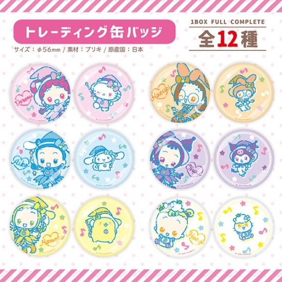 ファンやコレクターに嬉しい、缶バッジも♪こちらは全12種類が揃うBOXセットです。おジャ魔女どれみのキャラクターはもちろん、サンリオのコラボキャラも揃っています。