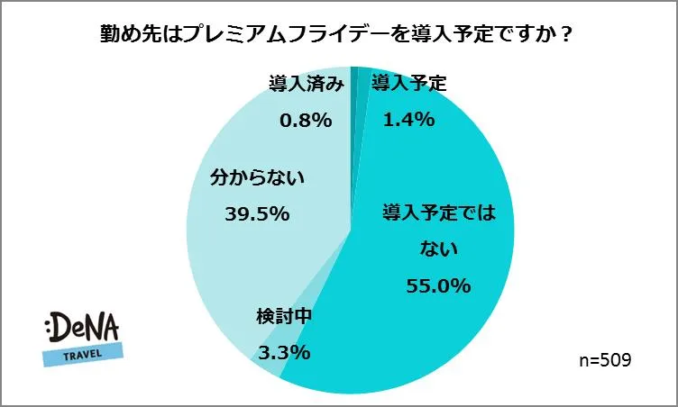 オンライン総合旅行サービス「DeNAトラベル」(http://www.skygate.co.jp)を運営する株式会社DeNAトラベル(本社:東京都新宿区、代表取締役社長:中野 正治)は、会社に勤務する25~69歳の男女509名を対象に「プレミアムフライデー」に関する調査を実施しました。