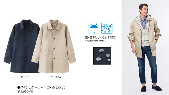 ・ステンカラーコート (S・M・L・XL) ¥3,990+税