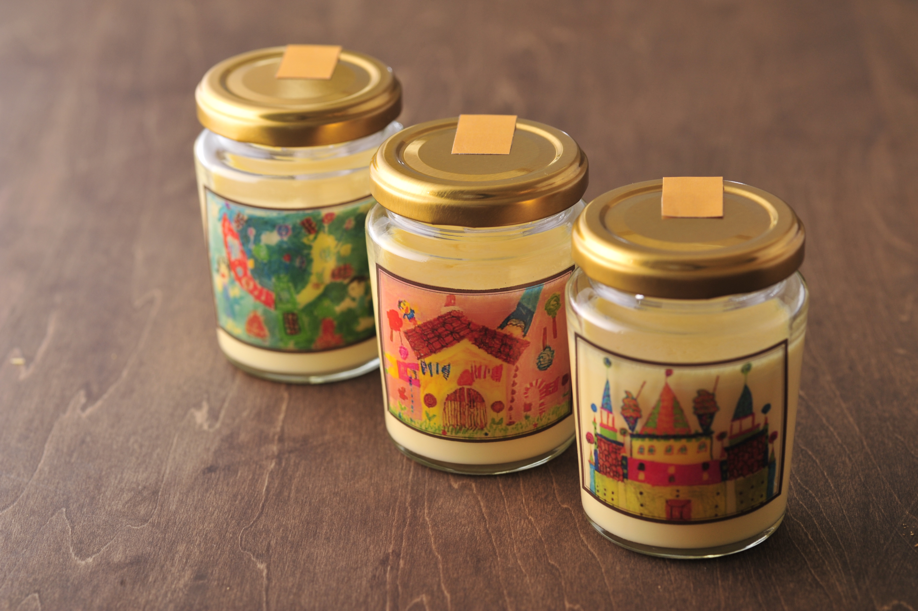 「彩の国優良ブランド品」に認定されている「彩たまご」の風味がぎゅっと詰まった濃厚な味わいのプリン。あえてバニラビーンズは入れないことで卵本来の魅力を引き出しました。瓶には春日部絵画教室の子どもたちが「お菓子の家」というテーマで自由に描いた9種類の絵がデザインされています。