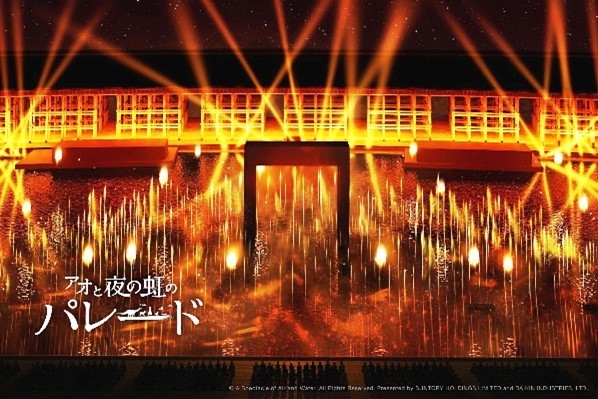 「アオと夜の虹のパレード」は、水、空気、光、炎、映像、そして音楽を駆使して、生命(いのち)の物語を壮大なスケールで描くスペクタクルショーです。万博を象徴するエリア「ウォータープラザ」で、万博会期中毎日、日没後に開催される予定です。