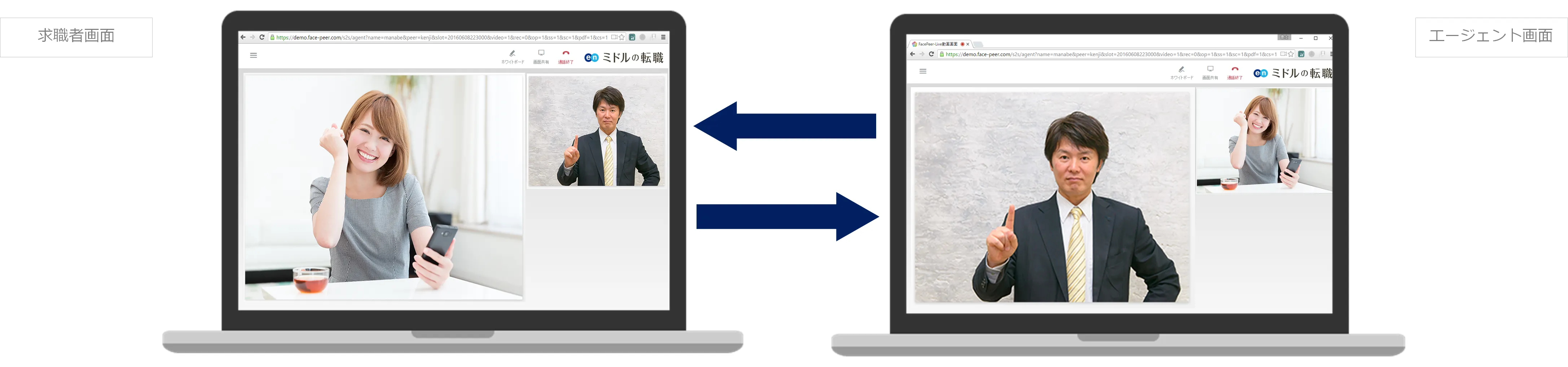 専用アプリをインストールする必要なく、IEまたはChromeでオンラインビデオ面談が可能になりました。多忙なミドルの時間と距離の制約を排除し、限られた時間の中でも、充実した面談実施を実現します。
