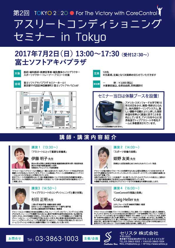2017年2月3日 09:30セリスタ株式会社(所在地:東京都千代田区、代表取締役:伊藤 承正)は、2017年7月2日(日)に開催される「第2回アスリートコンディショニングセミナー」の参加申込みをスタートしました。