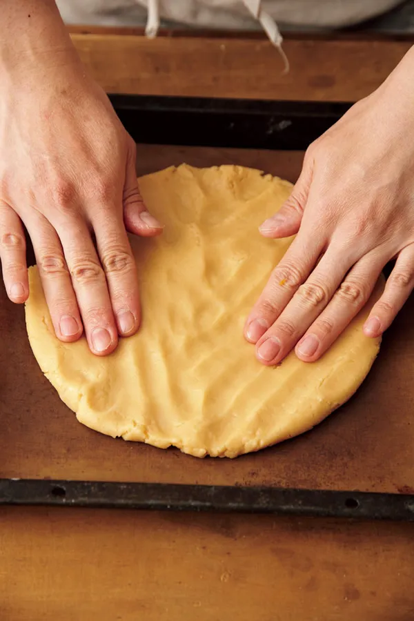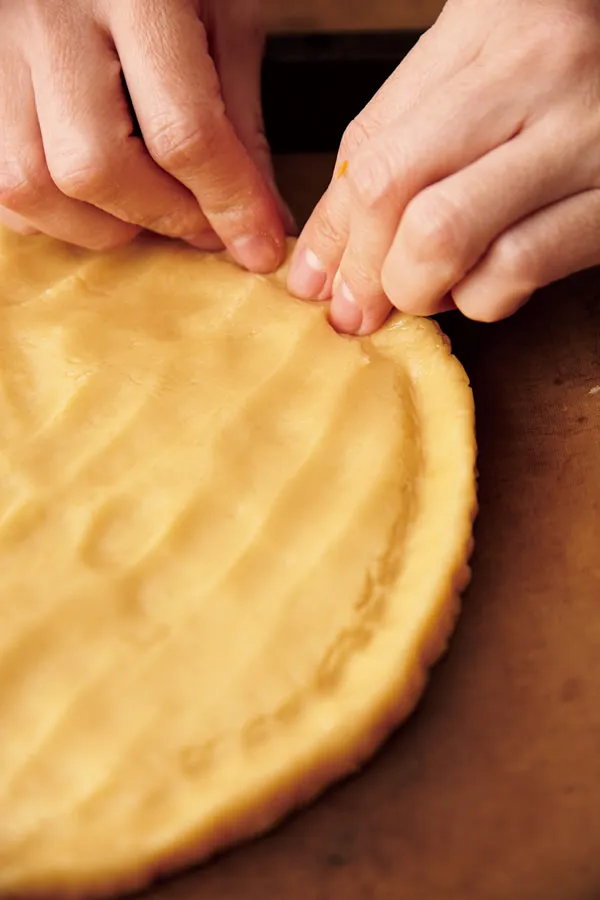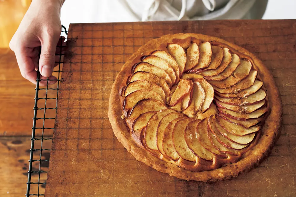「りんごの型いらずタルト」は、タルト生地もアーモンドクリームもボールの中で混ぜるだけ。菜種油を使ったタルト生地は、冷蔵庫でねかせる必要がなく、そのまま型いらずで成形できる扱いやすさも魅力です。