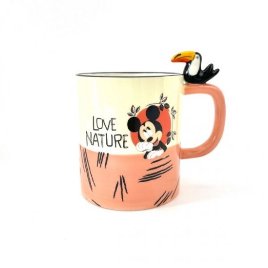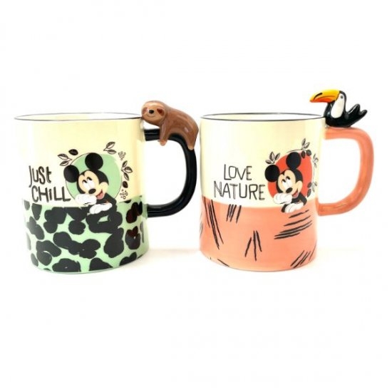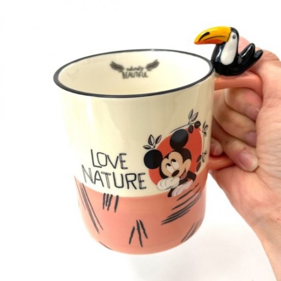 こちらのマグカップにはlove natureの文字が!「自然が好き」という意味を持ちます。自然のどうぶつとミッキーのコラボは新しい発見です♪コップのフチまわりが黒くカラーリングされているのもワンポイント。