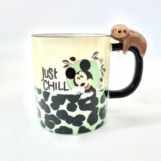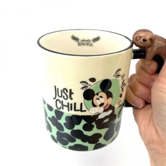 ミッキーとナマケモノの珍しい組み合わせです。持ち手にはかわいいナマケモノがくっついています。ミッキーの周りには植物が描かれていて、大人な雰囲気もありますよね♪植物とナマケモノを見つめるミッキーも可愛いです。