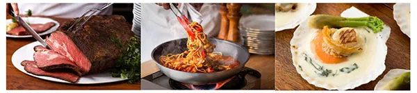 また、お客様の目の前でシェフの熟練の技を披露する『ライブキッチン』では大人気のローストビーフも提供。食材の美味しさを引き出すことを意識したシェフのアイデアメニューをお楽しみください。