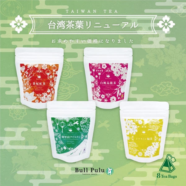 パッケージも価格もリニューアルしたBull Puluの台湾茶をこの機会に是非お楽しみください。