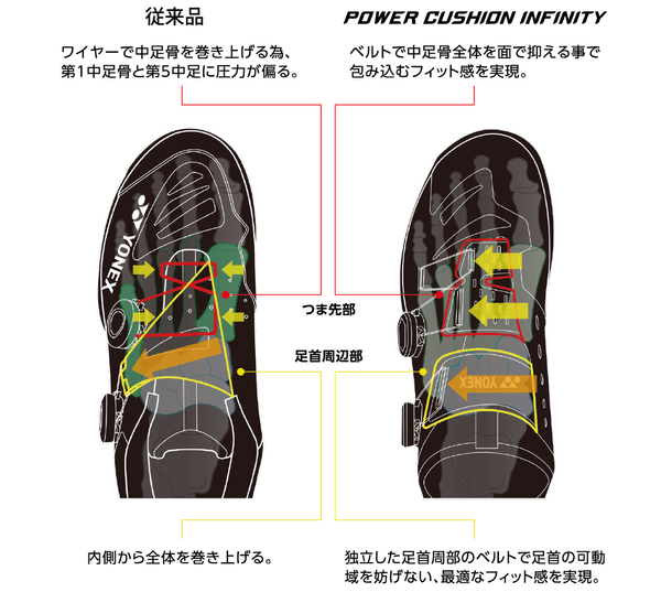 ヨネックス株式会社(代表取締役社長:アリサ ヨネヤマ)は、優れた衝撃吸収性、反発性を併せ持つ「パワークッション®プラス」を搭載し、新設計のBOA®※1フィットシステム採用により包み込むフィット感を生み出すバドミントンシューズ「POWER CUSHION INFINITY」を2022 年5月下旬より発売いたします。