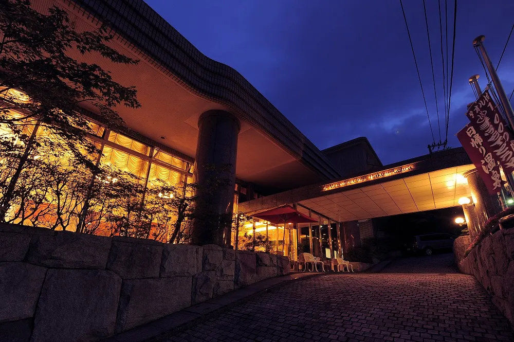 【主な館内設備】日本料理レストラン、カラオケルーム、宴会場、大浴場 (天然温泉・サウナ付き)、エステサロン