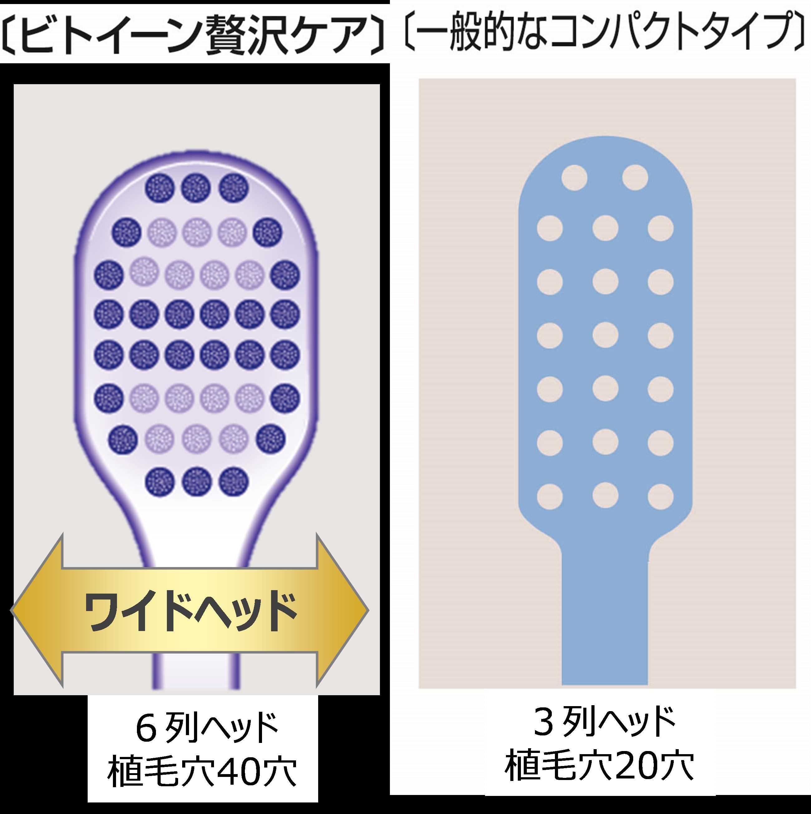 “ワイドヘッド”はそのままに、レギュラーサイズのヘッドを縦方向に1行短くしたコンパクトタイプなので、お口が小さい人でも使いやすいサイズです。