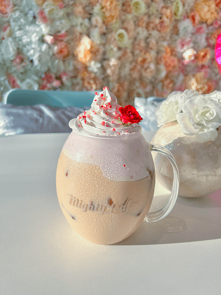 WHITESTELLA(ホワイトステラ)では大人気ドリンクのティーマキアートに新しいアレンジとしてストロベリーパウダー&バラのトッピングが新登場!