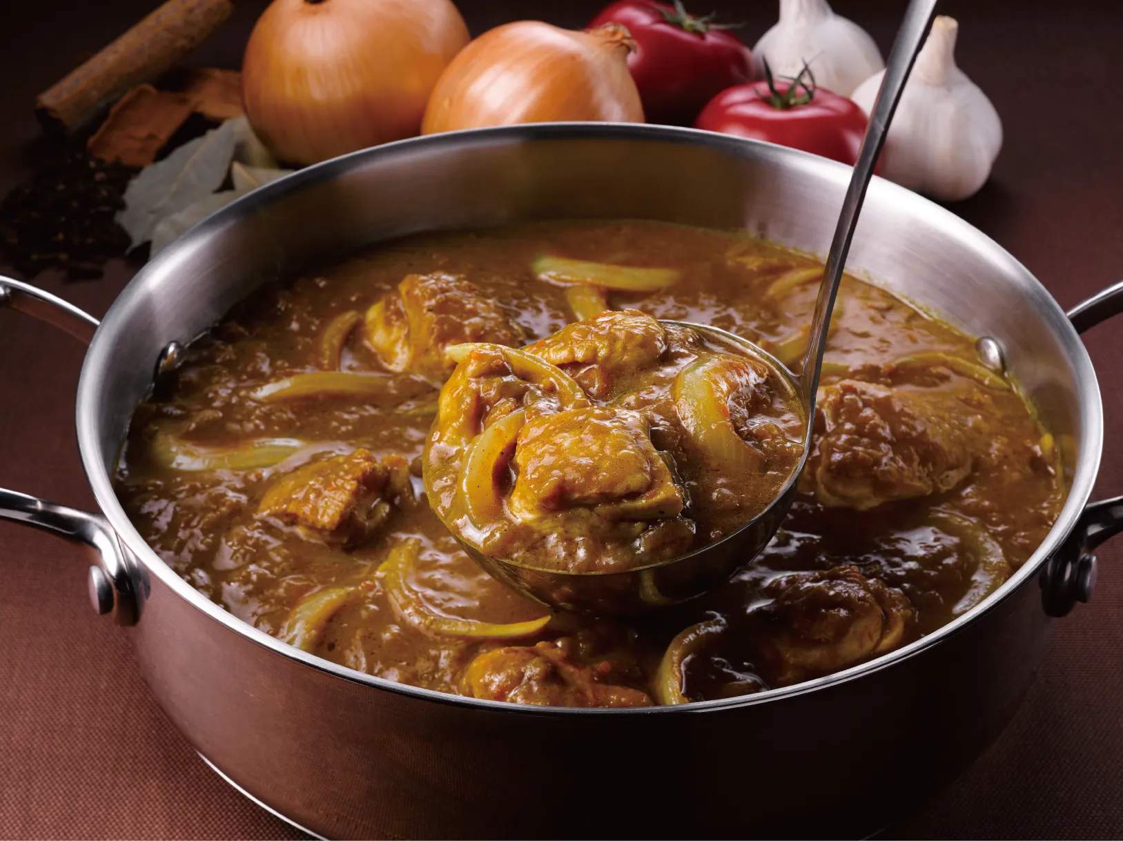 甘みと旨みを凝縮させたオニオンソテーをぜいたくに使用。秘伝の特製スパイスで香りを高くし、酸味の強いヨーグルトを加えてカリーソース全体の旨みを引き立てました。