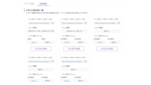ほかの機能ではURL設定を使うことができないため、お気をつけください。