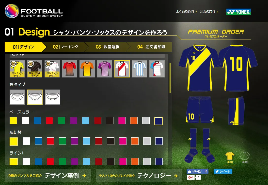当社webサイト内で展開中の、豊富なデザインを選択してオリジナルのフットボールウェアを作ることができる「プレミアムカスタムオーダー」で作成した商品です。