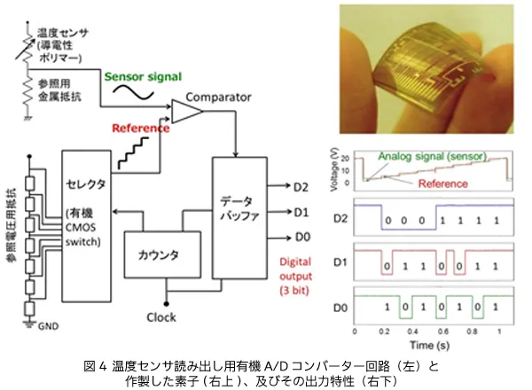 (2)フレキシブルな多ビット有機A/Dコンバーターによる温度センサ読み出しを実現