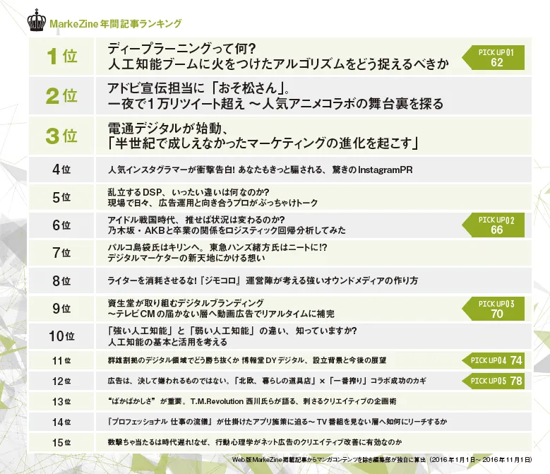 マーケターが最も注目した記事は「ディープラーニング」 MarkeZineが、新刊発売を記念して 「年間記事ランキング」を公開!