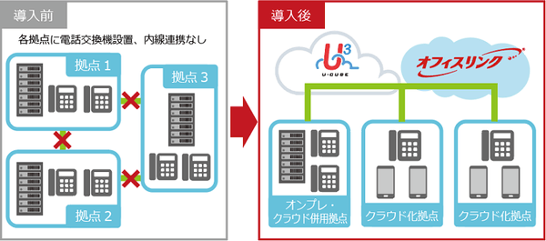 各拠点で更新時期の異なるPBXを利用、経過年数の古い拠点をクラウド化