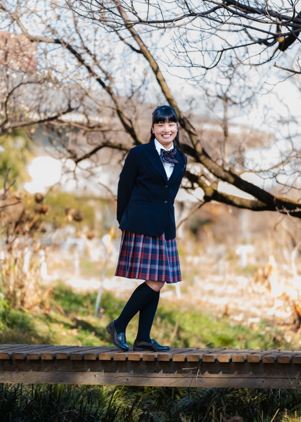 校内には畑があり、いろいろな作物を育てていますが、その傍らにはきれいな小川が流れています。ここは学園のどこよりも空気がすごい澄んでいて、沢山の思い出が詰まっていて、私にとっての自由学園を表す場所です。世界中の人に自由学園の良さを写真を通して感じてほしいです。