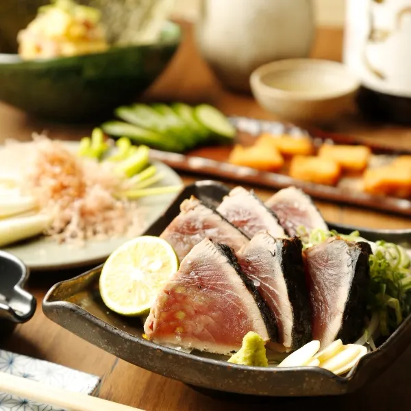 藁焼きのライブ感あふれるカウンター。ウッドを基調としたモダンな空間は、大人たちのための居酒屋。てつ鍋でご提供する「白味噌仕立てのもつ鍋」や、季節の郷土料理を中心に、土佐から仕入れたカツオを使った藁焼きの「カツをのたたき」や酒の肴も充実。全国各地から取り揃えた日本酒、焼酎、果実酒など、豊富なお酒も心ゆくまでお愉しみください。
