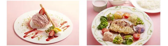 ジューシーな豚肉に、やまみつの香りが引き立つ マッシュポテトを乗せオーブンで焼き上げました。お皿の周りはロマネスコなど珍しい野菜で彩り、フレッシュ イチゴのドレッシングを添えました。