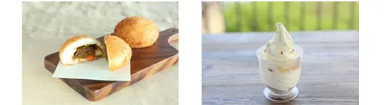 こだわりのフランスパンにやまみつをたっぷり使ったバターラスクと、やまみつ&ミルクのふんわりやさしい味わいのアイス。どちらも華やかな味わいが 楽しめ、ハイキング途中のおやつと しても人気です。