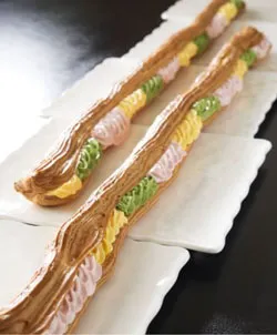 ながーいロング・シューの中には抹茶、チョコレート、生クリーム