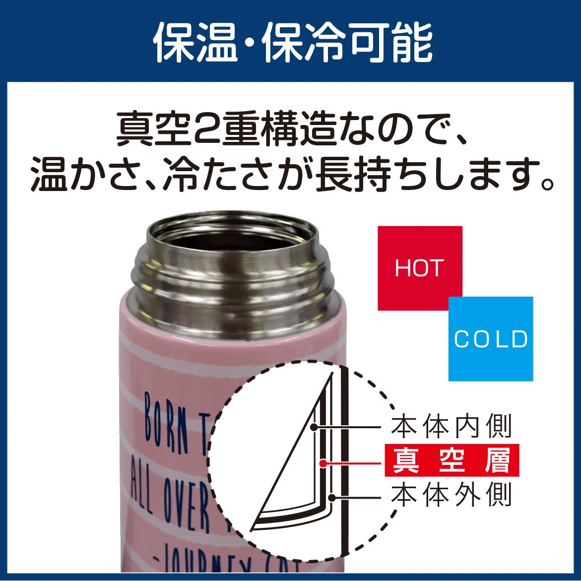 ステンレス真空2重構造により、飲み物の温かさ・冷たさが持続します。