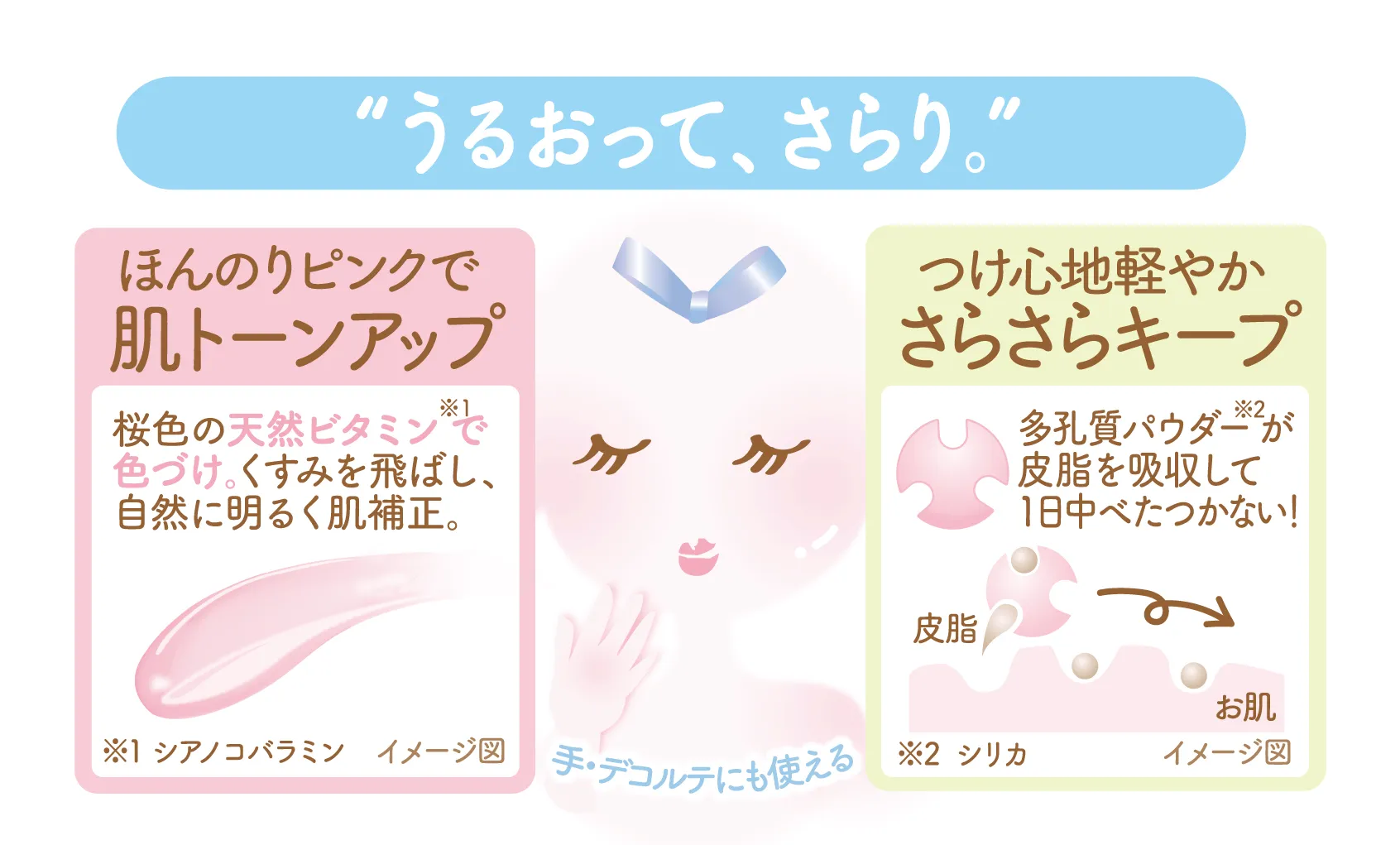 桜色の天然ビタミン※1で色づけ。くすみを飛ばし、自然に明るく肌色を補正します。