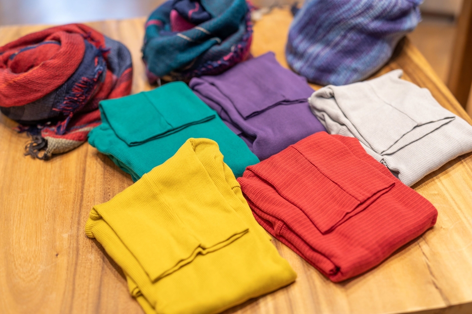 『tamaki niime』のアイテムはすべて配色や柄が異なる1点物。手しごとの心地よさを体験してください。