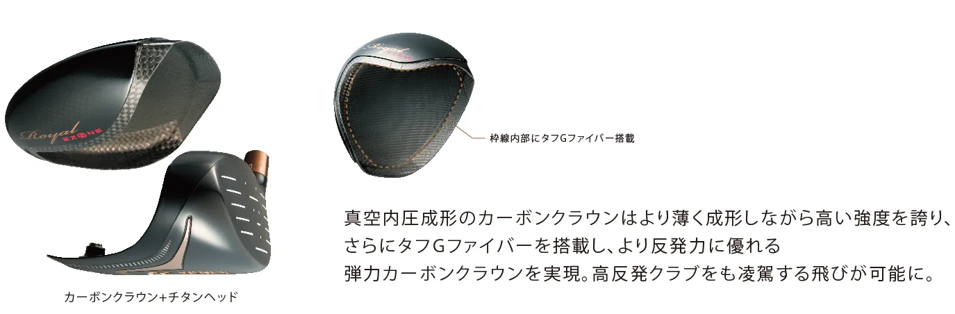 1.新製法「真空内圧成形」と新素材「タフGファイバー」の弾力カーボンクラウン複合ヘッド