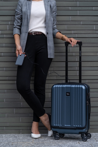 2つのUSBポートを内蔵。スマートフォンとノートPCの両方充電も可能。ポケットルーム内にモバイルバッテリーを繋ぐケーブルがあります。