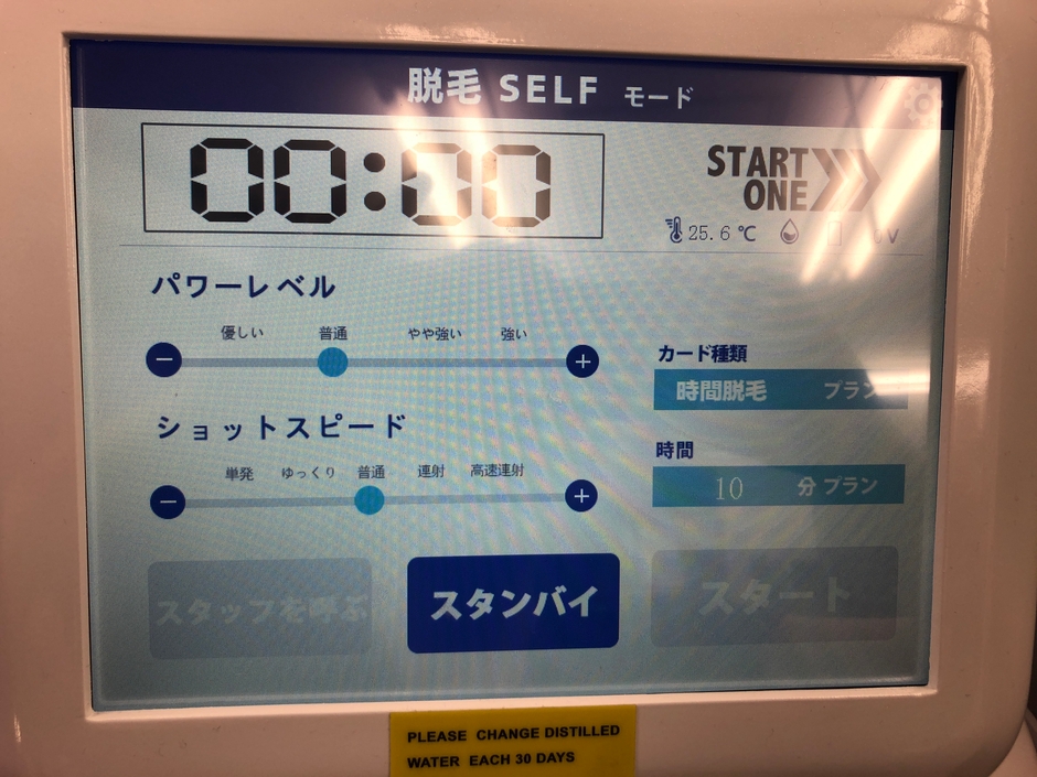 脱毛機を立ち上げた画面もどなたでもわかりやすいようなシンプルな画面