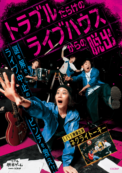 全世界で累計1,490万人以上を動員しているリアル脱出ゲームを企画制作する株式会社SCRAP(本社:東京都渋谷区、代表:加藤隆生)は、リアル脱出ゲーム『トラブルだらけのライブハウスからの脱出』を2025年5月26日(月)より渋谷CLUB QUATTROを皮切りに、全国で開催いたします。
